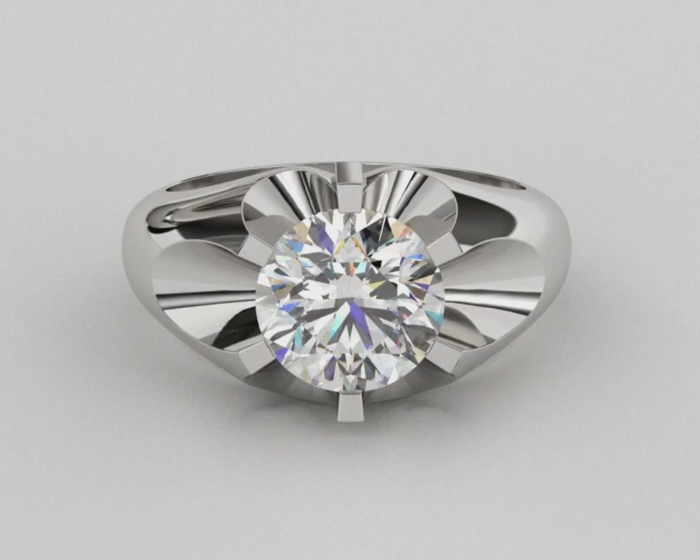Anello da uomo solitario con diamante grande da 3 carati in oro bianco