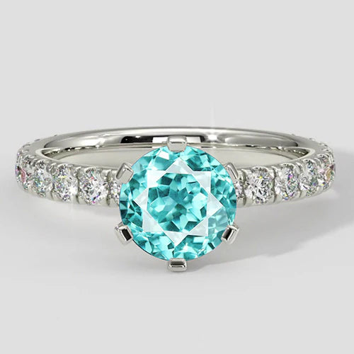 Anello di fidanzamento con tormalina Paraiba da 2 carati e diamanti