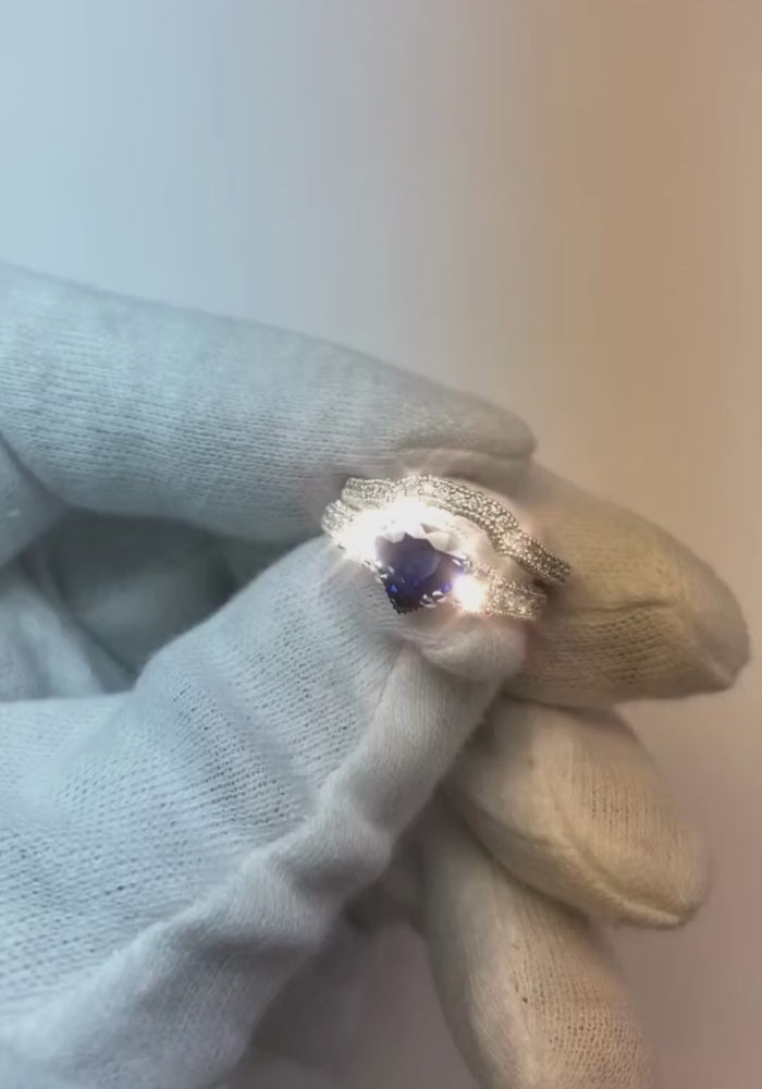 Dettagli pietra: c'è un taglio a cuore zaffiro ca. 1,50 carati (circa 6,5 x 6,5 mm) e ca. 2 carati di diamanti nel set. Pietre naturali estratte dalla terra.