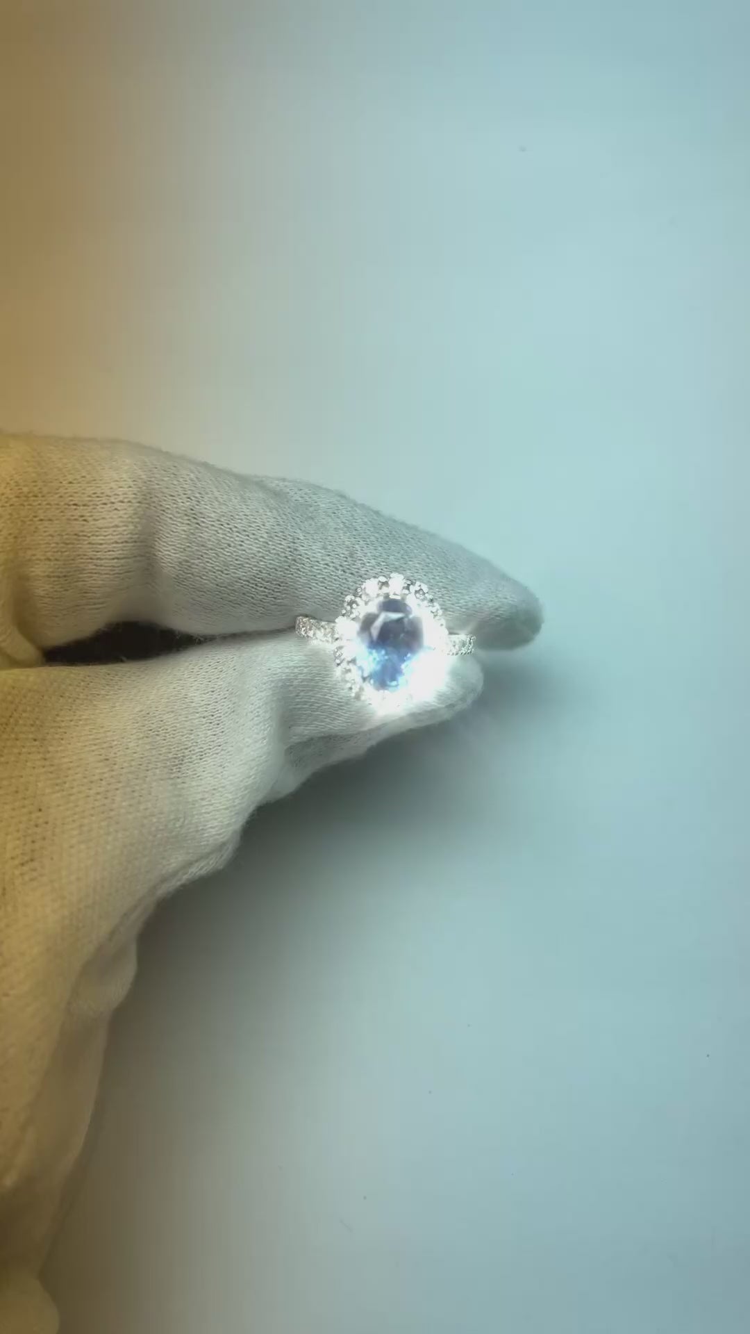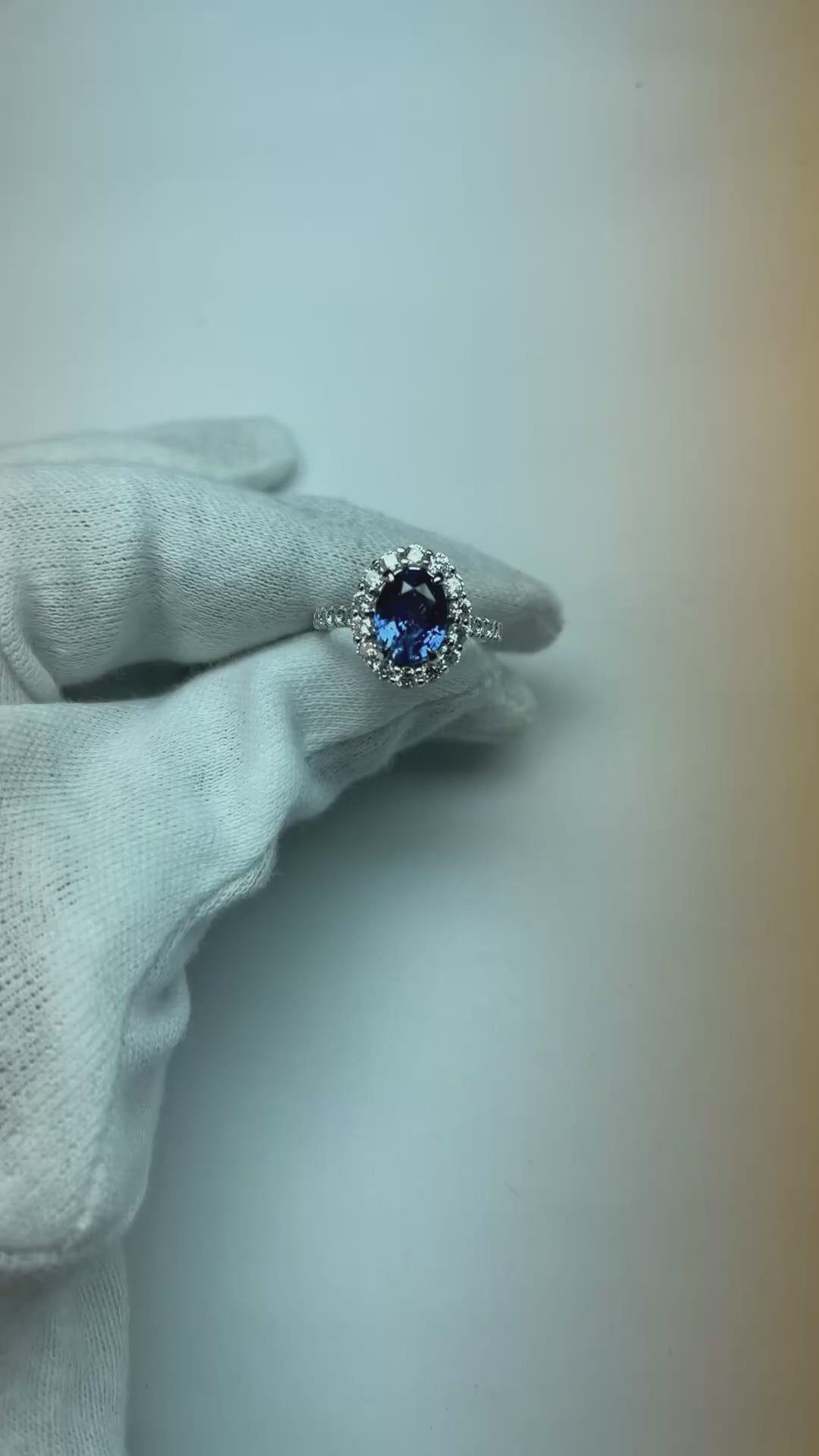 Anello Halo 4,50 carati zaffiro blu Sri Lanka e diamante in oro bianco 14K