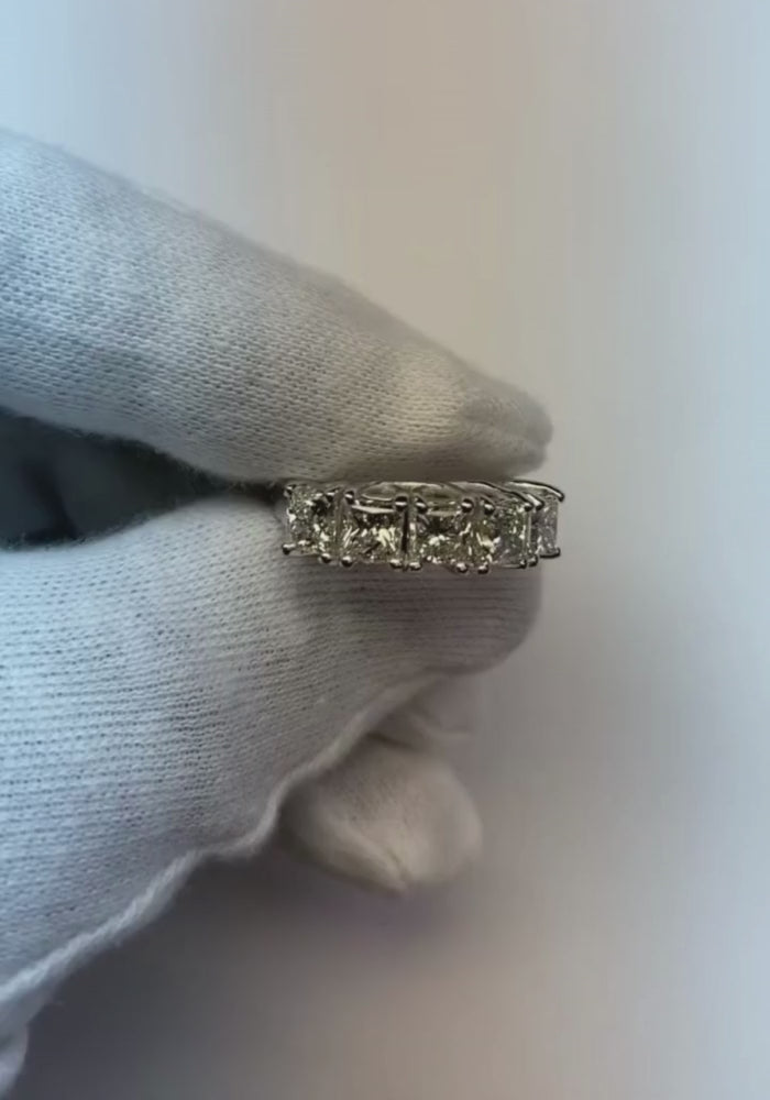 Cinque Pietre Mezza Eternità Principessa Diamante Band 3 carati