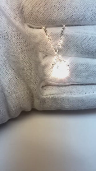 Dettagli in pietra: c'è uno zaffiro a taglio rotondo di ca. 1 carato (diametro ca. 6 mm) e ca. 1 carato di diamanti più piccoli nel ciondolo. Pietre estratte dalla terra naturale.