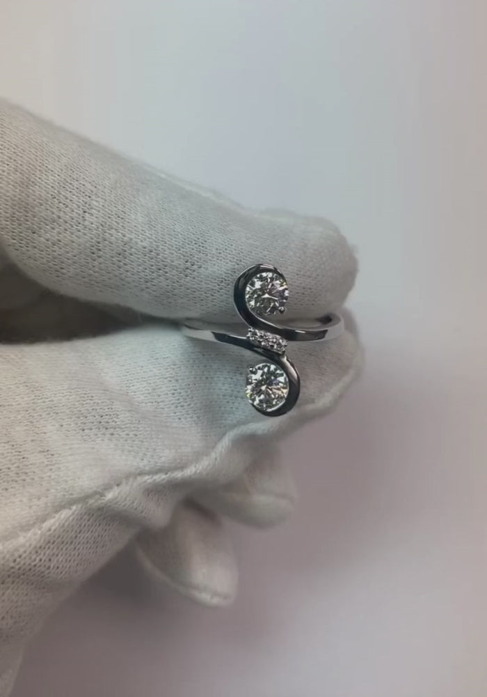 Gioielli Art Nouveau Nuovo anello di diamanti Toi et Moi a due pietre