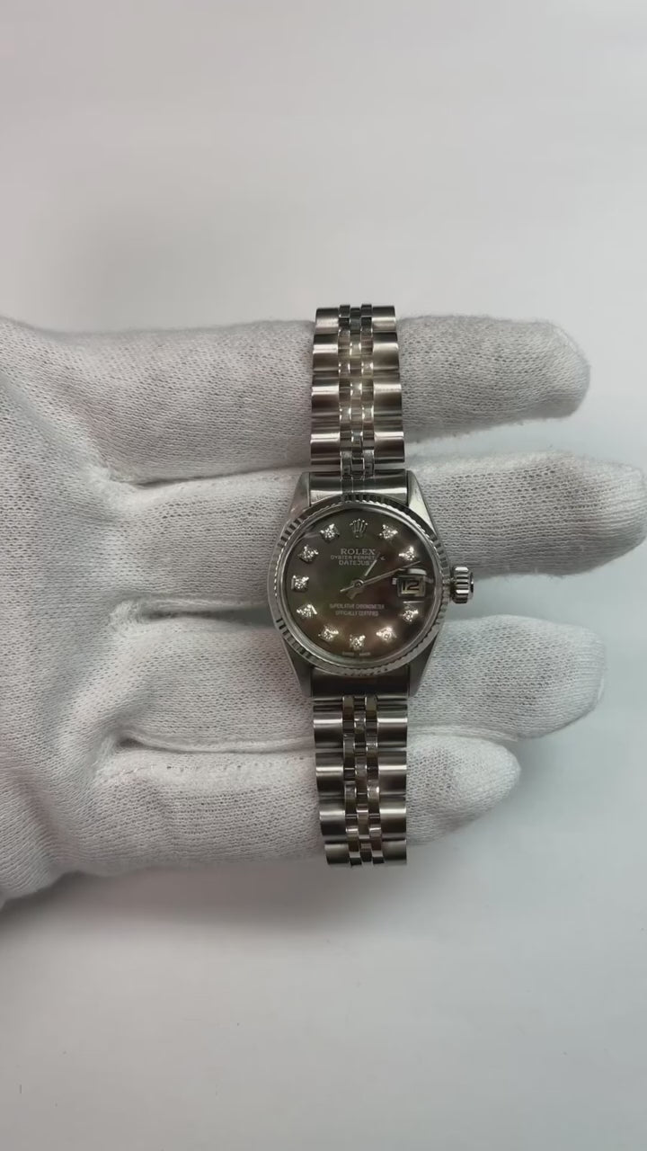 Orologio da donna Rolex Datejust con quadrante grigio e diamanti, in acciaio inossidabile