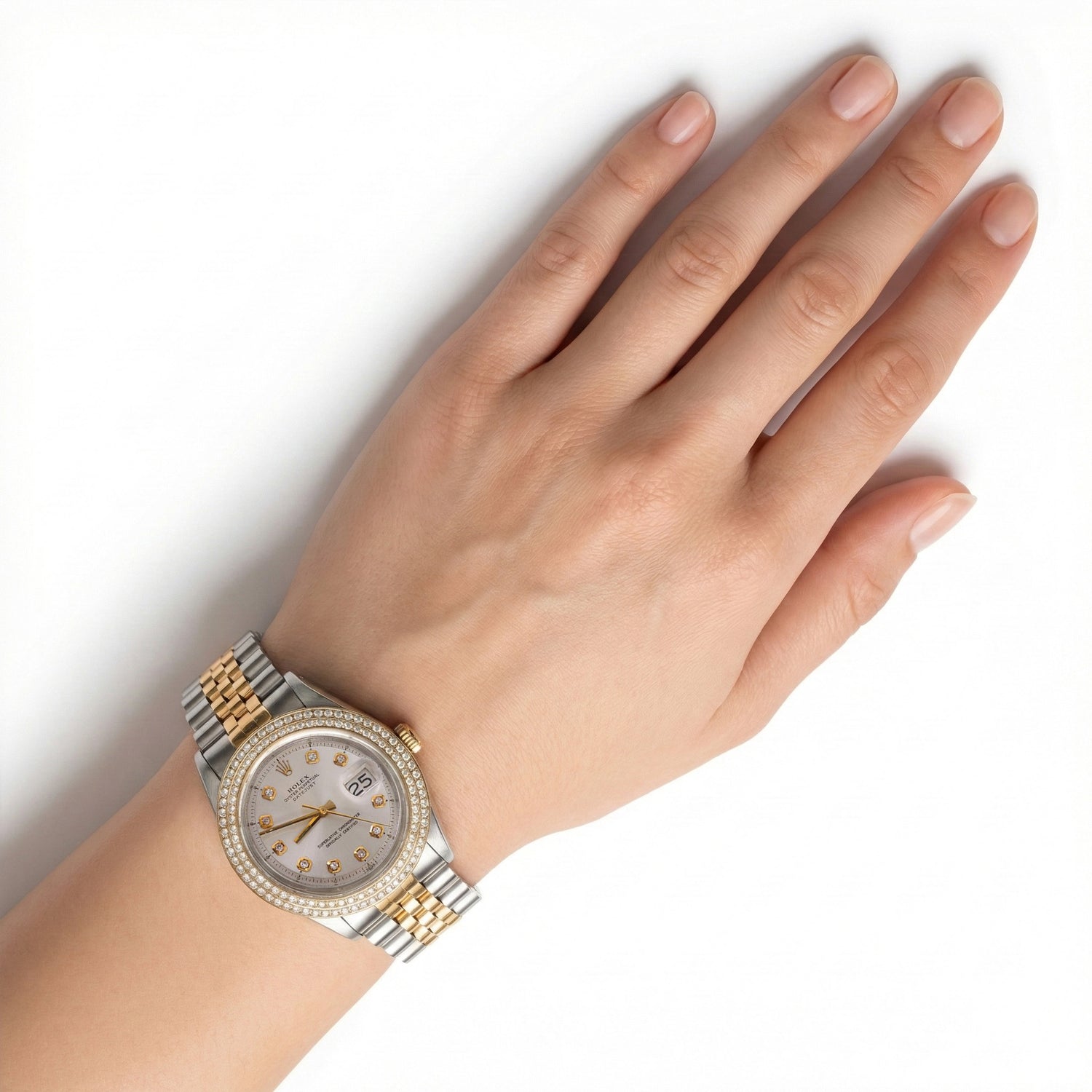 Orologio Rolex Datejust con lunetta a doppia fila di diamanti Datejust
