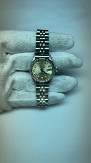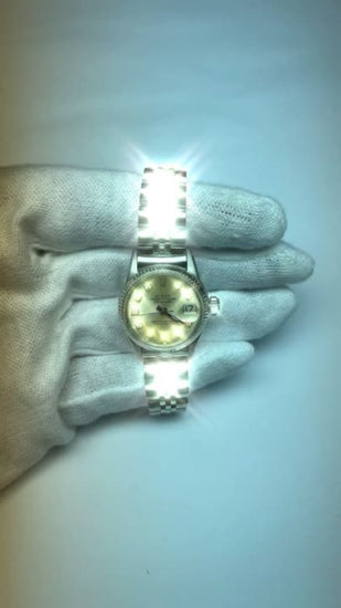 Orologio Rolex signora Datejust in argento con bracciale giubileo in acciaio inossidabile e lunetta scanalata